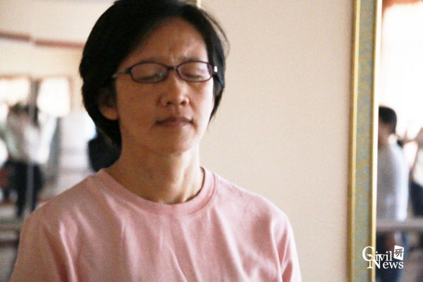 接着每位老师找到离自己最近的一位老师组成一组,由其中一位老师带领着另一位伙伴一起走动,另一位老师像影子一样对其动作进行模仿,仿佛是镜中的自己,然后各位老师闭上眼睛去感受自己,走到活动室中最远的地方,并调整到自己最放松的状态。