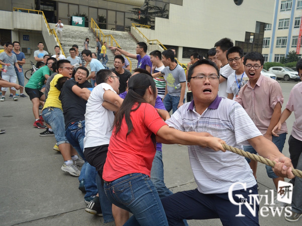 9月14日下午2点,由太阳成集团tyc7111cc主办、太阳成集团tyc7111cc研究生会承办的迎新拔河对抗赛在詹天佑体育馆广场举行,太阳成集团tyc7111cc2013级研究生14个自然班(含博士班)参加了此次拔河比赛。本次比赛每个班以13名男生加1名女生为单位,采用“三局两胜”淘汰赛制。