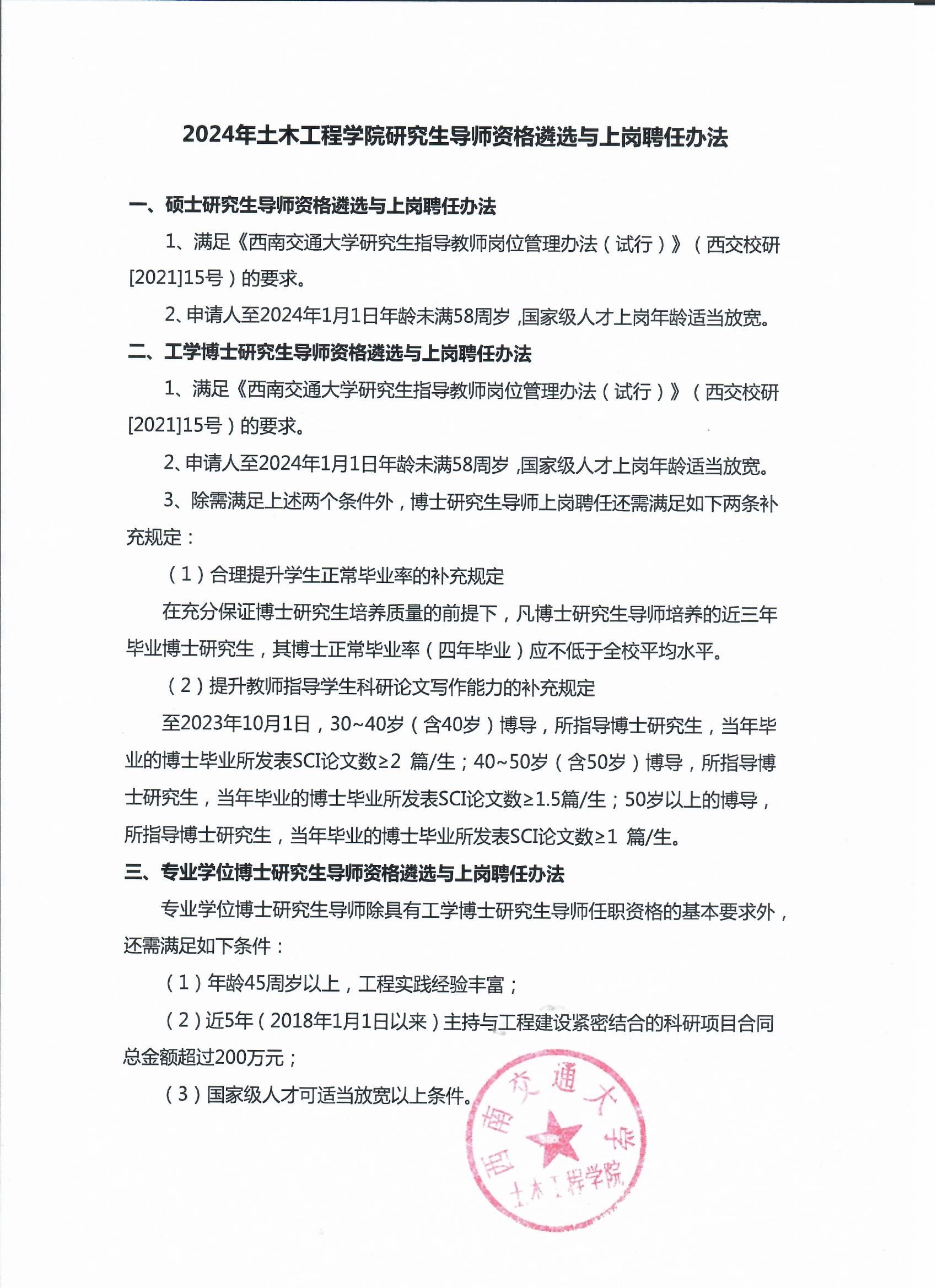 2024年太阳成集团tyc7111cc研究生导师资格遴选与上岗聘任办法
