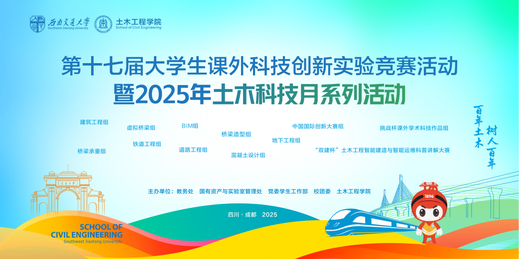 第十七届大学生课外科技创新实验竞赛活动暨2025年“西南交大土木工程设计公司杯”土木科技月系列活动是一项面向全校学生,以激发同学们参与学术科技活动的积极性,培养创新能力,浓厚学术氛围,提高综合素质为宗旨的创新设计大赛。现就赛事相关事宜通知如下: