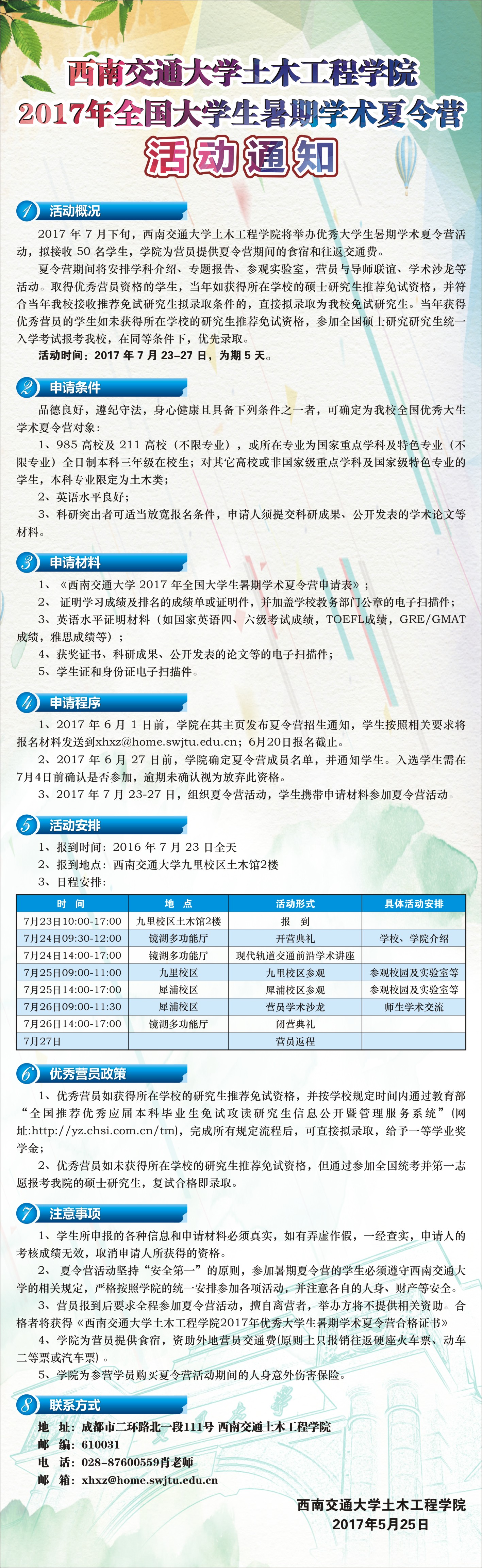 太阳成集团tyc7111cc土木学院2017全国大学生暑期学术夏令营活动通知