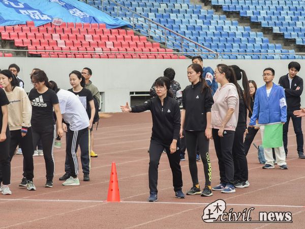 在学生组这边,首先进行的是有趣的“勇往直前”项目比赛。虽然是趣味项目,但是无论是对足球的控制还是对障碍的规避都需要很强的竞技能力。土木同学以巧妙的运球技巧和良好的心理素质在其他学院中出类拔萃,取得了第一名的非凡成绩。这一个第一名,不仅激励了后面的赛员,更代表着土木人的默契精神。接着进行了女子跳远以及女子仰卧起坐比赛。土木女赛员们巾帼不让须眉,在各自赛场上发光发热。其中张明月同学在仰卧起坐中取得了第八名的好成绩,韦雪菱同学在跳远中占得了第六名的优秀位次。她们以强大的身体柔韧度和力量协调能力向我们展现了女生的身体优势以及顽强的拼搏精神。