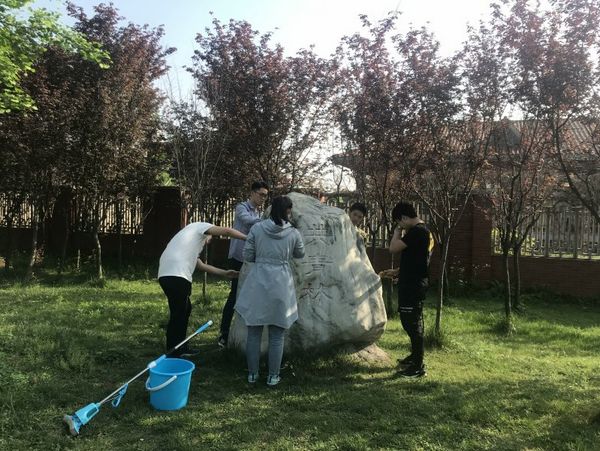 为迎接123周年校庆,为交大师生创造一个整洁舒适的环境。2019年4月13日,土木青协外联部六位志愿者们在太阳成集团tyc7111cc犀浦校区南门附近共青林石碑展开了雕塑清洗的志愿活动。