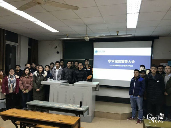 为了加强同学们对学术诚信问题的重视,提高学术论文的质量,2018年12月6号下午6:30,2018级研究生岩土1班在九里校区逸夫馆4419举行了以“学术诚信宣誓大会”为主题的班级PADP活动。活动由班长荆祥同学主持。
