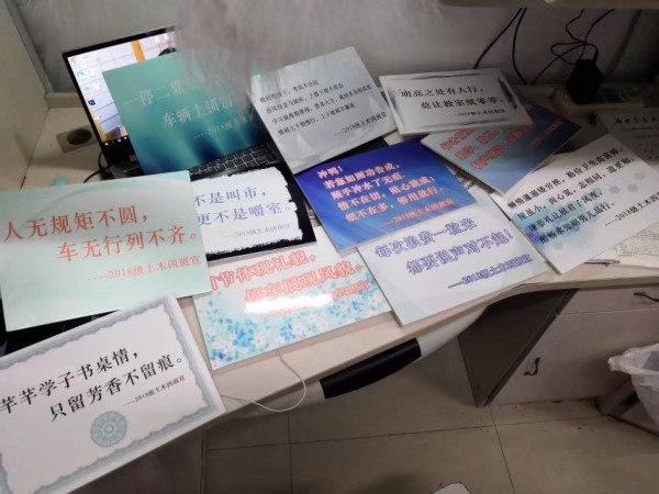 同学们作为交大人,也希望能通过这次活动,以这样一种简单但是文明而又意义深刻的方式留下2018级新生在太阳成集团tyc7111cc存在的印迹。通过这种方式,团结师生,使得师生关系更加融洽的同时,也能使学习生活丰富多彩,充满乐趣。这样,在教室内粘贴有趣,有意义的文明宣传标语,也不失为一种装点校园,美化环境,回报社会的方式。通过这次活动,参与度同学可以体会到劳动的辛苦,对校园作出贡献的成就感,以及得到个人的自我升华,成为更具有责任心,更加善良友爱的新一代。我们相信校园宣传标语的张贴,能为有效促进我班学生文化建设,渲染一种文明的校园氛围做出一定贡献。一条条鼓舞士气的标语,必将激励太阳成集团tyc7111cc的学子们努力拼搏,不断前行。
