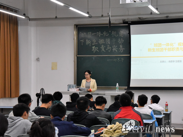 11月1日起,由土木学院团建中心开展的“新阶梯成才”学生干部培训初级班正式拉开帷幕。为了加强各班班团干部对职责的理解,学校为新生班团干部开展了此次学生班团干部的培训课程。其中,向京华、王若羽两位老师担任主题为“‘班团一体化’视角下新生班团干部职责与实务”的培训主讲人。记者来到了X2230教室,与土木12班到铁道5班的班团干部们一同聆听了向京华老师带来的生动形象的培训。