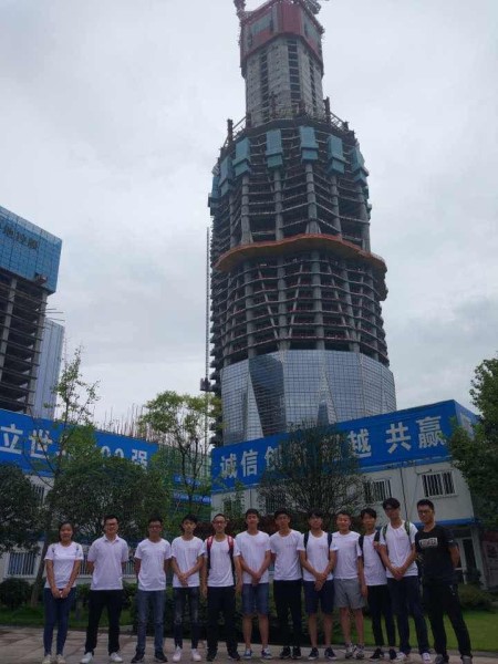 紧接着,我们又前往施工现场,对绿地中心468工程进行进一步了解,学长们也跟我们讲述了很多关于468工程的知识,并在现场和同学们举行了一个小的答疑会,积极为同学们解答各种相关知识。