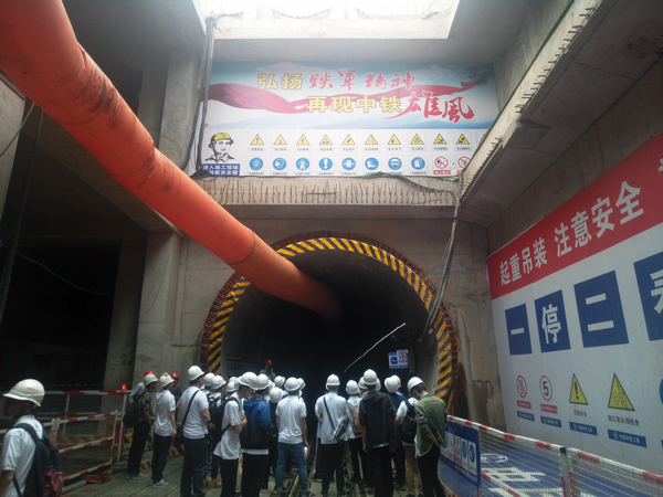 师生们参观完中铁二局陈列馆后,乘车前往城通公司承建的成都地铁8-1标盾构分部项目部参观学习,详细了解地铁车站、盾构施工工艺及流程。在项目部座谈会上,中铁二局、城通公司人力部及项目部班子成员等结合师生们的提问进行了积极解答,并开展了互动交流。期间,交大学生重点就他们关心的工地工作、学习和生活等进行了沟通和交流,并表达了加入中铁二局的愿望。