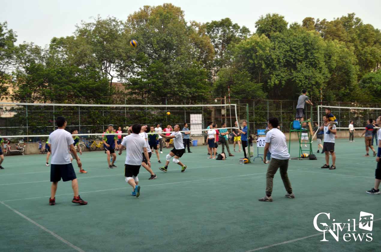 赛前,双方队员都进行了热身、发球等训练,为接下来的比赛做好准备。此时,赛场周围早已人头攒动,两单位的观众都对这场精彩的比赛迫不及待。
