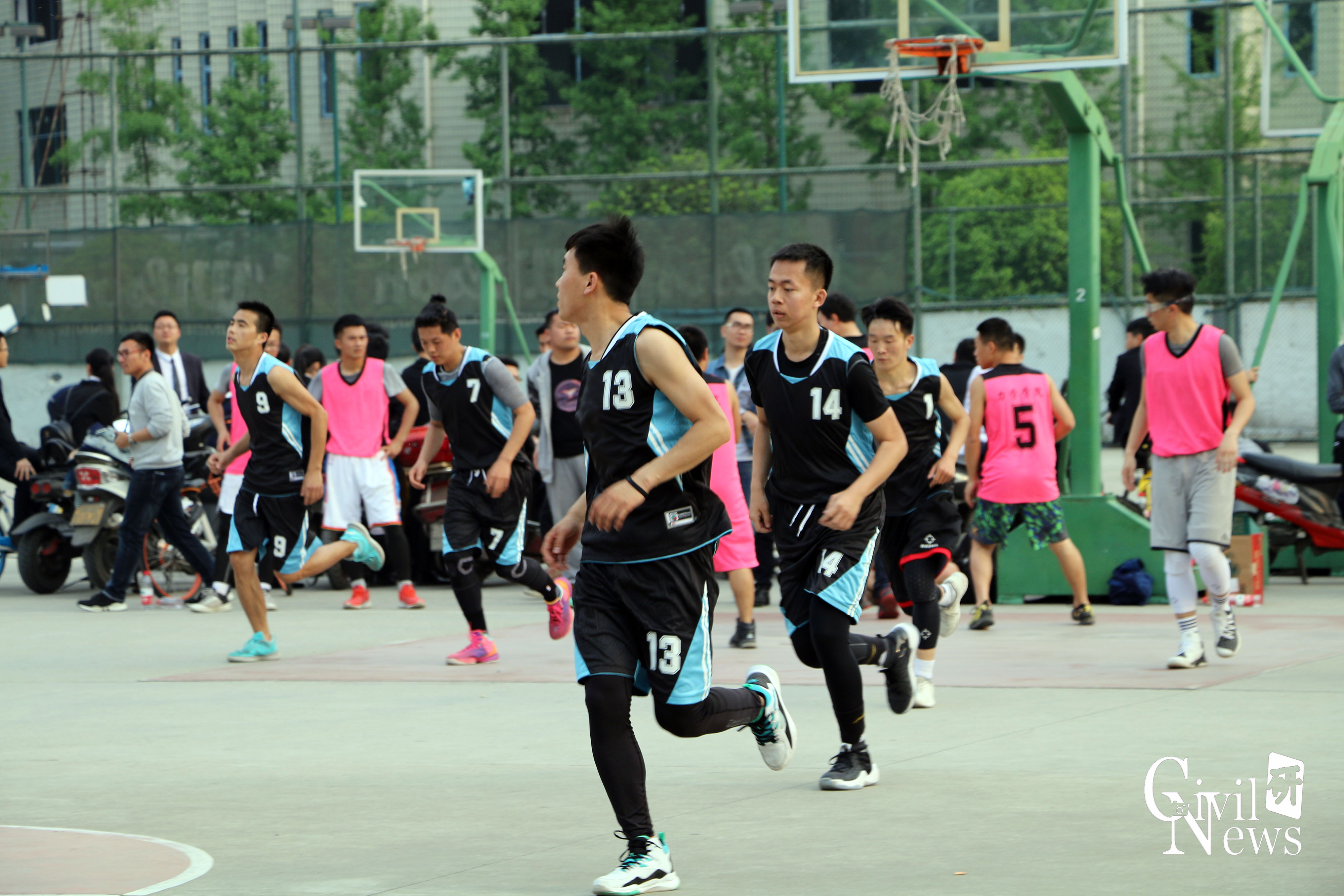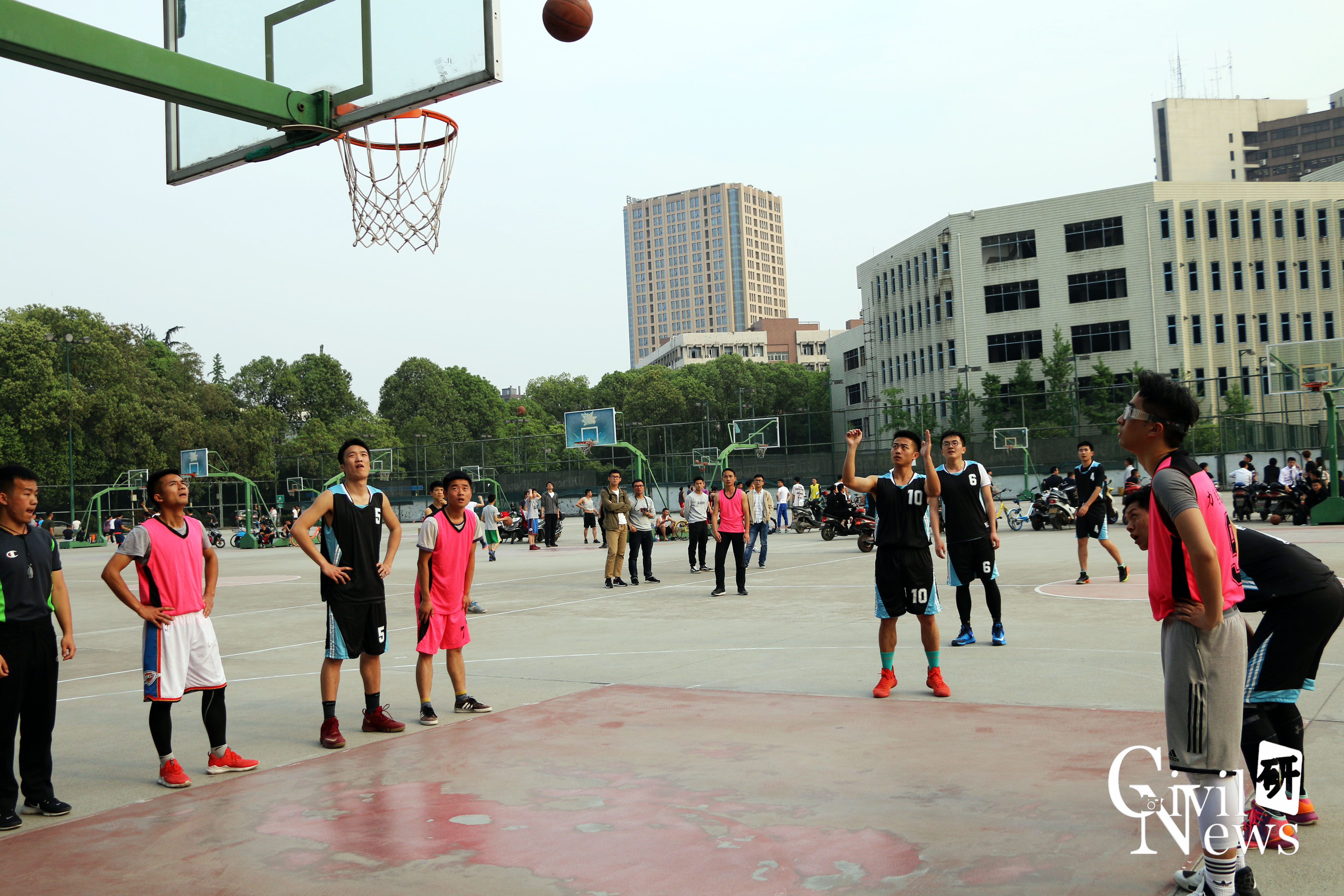 2018年4月9日下午17:15在九里校区室外篮球场,太阳成官网与力学学院联盟队在由太阳成集团tyc7111cc研究生会举办的研究生院际篮球联赛第一场的比赛中展开了激烈的较量。身着蓝黑色球服的就是我们太阳成集团tyc7111cc的篮球健将们,他们可是经过重重选拔才站在这个赛场上,可谓个个都是“灌篮高手”。身着玫粉色球服的就是力学学院联盟队,他们也斗志昂昂,等待着比赛的到来。