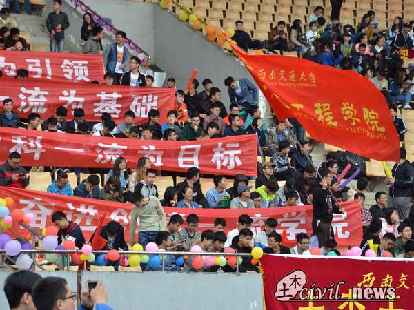 4月14日,第119届校运会在北区体育场继续进行。上午8点40,风吹起土木学院的旗帜飒飒作响,早早赶来准备为运动健儿们加油助威的土木学子们已蓄势待发,裁判员们在进行最后的场地清理和器材调试,运动员们也陆续开始了各自的检录程序,一切都显得井井有条。微凉的天气也抵不过大家的热情,场内热烈的气氛开始节节攀升。