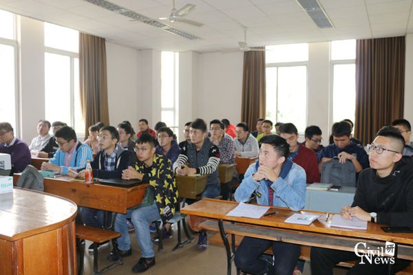 在交流互动环节,张佳鑫学长就同学们提出的课程学习、论文写作等方面的疑惑进行了一一解答。