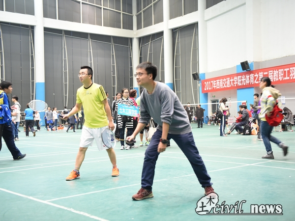 开幕式结束后,老师们在各自场地做热身运动并等待比赛开始。随后,记者走进土木学院的比赛现场,李彤梅副书记、李福海、刘爱萍、严炎、杨文波、刘海波等诸多老师正在为比赛做准备,褪去平日里讲台上认真严肃的模样,他们在羽毛球场上尽情地散发出光彩。