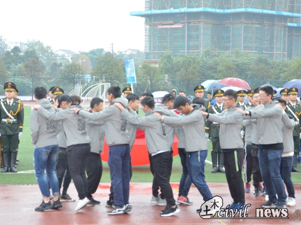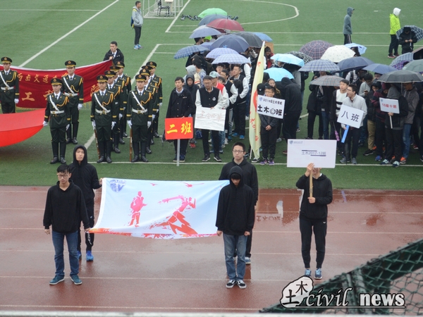 最后由李书记宣布开幕式结束,各班有序离场。值得一提的是,开幕式全程下着小雨,但大家依然坚守在运动场,不畏风雨,坚持不懈。也正是由于场地湿滑,不适合进行比赛,运动会正式的比赛也不得不推迟进行。尽管这样,大家的热情却丝毫没有递减。百年土木,挺拔坚韧,“搏采秋实”运动会,我们不见不散。