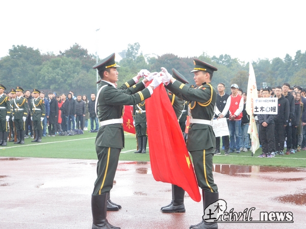 “青春点燃梦想,体育铸就辉煌!”在主持人吴宇凡、木克达斯激昂的开场词后,此次开幕式正式开始。首先进入会场的是国旗方队,护旗手庄严肃穆,迈着整齐的步伐,高举着国旗,坚定向前。紧接着入场的是太阳成集团tyc7111cc院旗,带着土木人的朝气,他们奋发进取,塑造着土木新的辉煌。