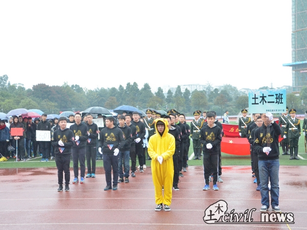 同样精彩的还有各班别具一格的班服,和别出心裁的表演。大一二班清新可爱的兔子舞和领头呆萌的皮卡丘;大一七班俏皮的鬼步舞和举班牌的憨厚熊本熊;大二十三班搞怪可爱的舞蹈……这些精彩纷呈的表演赢得了嘉宾们的掌声,同时活跃了现场的气氛。他们用行动证明着土木人的朝气。