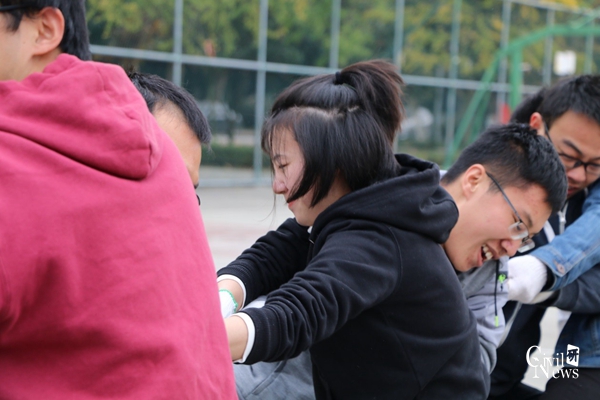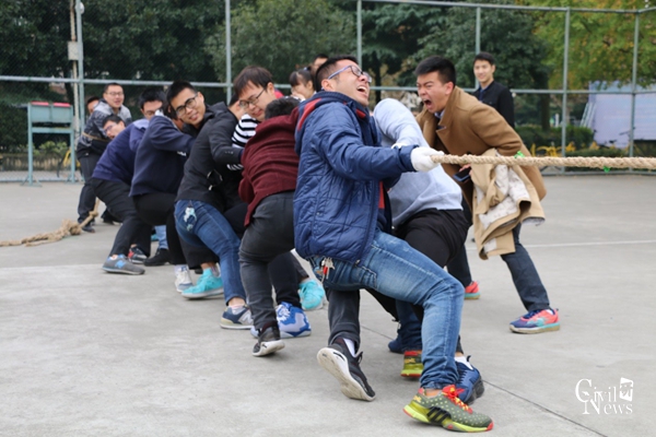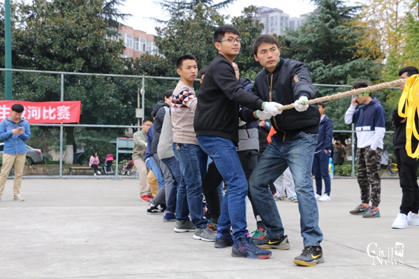 太阳成集团tyc7111cc2017级研究生拔河比赛,11月21日第二个比赛日,在篮球场中午12点30分准时开始。经过了前一天的奋战,九个实力强大的队伍杀出重围,根据比赛规则及抽签决定,专硕桥梁1班本轮轮空,直接进入下一轮。其余的八个班级采取三局两胜制争取半决赛资格。