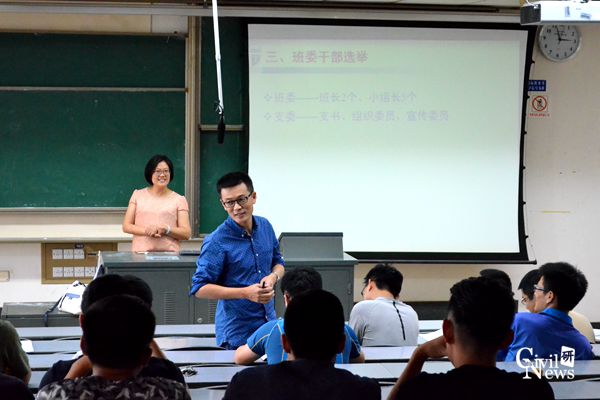 之后的家庭成员自我介绍环节中,班上的成员一一进行了幽默风趣的自我介绍。有的同学已经具有十分丰富的工程经验,有的同学已是大学教师,也有的同学刚本科毕业就直接攻读博士学位。班里的同学来自五湖四海,也体现了这个班级形成的难能可贵。大家充分的交流了自己在工作、学习、生活上的经历,也提出了对于新生活的憧憬。在相互认识之后,大家本着“自由选择,充分竞争”的原则进行了班委和支委成员的选举工作。