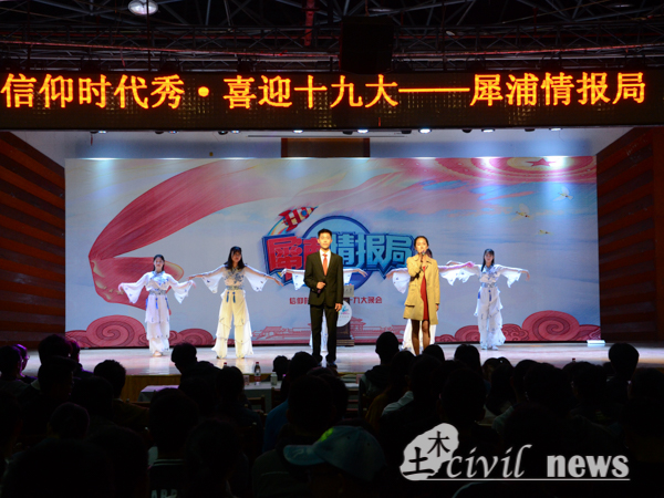提案会的结束也预示着此次“犀浦情报局”时代秀落下帷幕了,活动期间穿插了《爱我中华》歌舞秀,声舞结合,十分精彩。活动最后,承办方别出心裁设计了有奖问答环节,极大地调动了在场观众的积极性。校学生会通过模仿人民代表大会的形式举办了这场贴近生活的精彩演出,不仅呈现了一场绘声绘色的时代秀,还对到来的中国共产党第十九次全国代表大会致以热烈的欢迎。