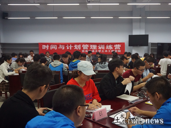 之后,李书记给各小组给了同学们20件具体的事件,让同学们用合理的时间分配,这20件事贴近生活,仿佛是同学们的日常生活。各小组讨论得异常激烈,纷纷从自身入手发表看法,还有同学分享出时间表来让这个任务更加真实。李书记谈到“要有改变,首先要抓好时间,与时间赛跑。做事不能拖拉,因为你永远不知道下一秒会发生什么,做事要学会拒绝,要有意志力,分清轻重缓急。”