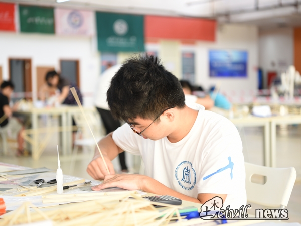 7月17日是第十一届全国大学生结构设计竞赛四川分区赛进行的第三天,比赛已经进行到第四阶段。早上8点,各校参赛队员陆续来到创新创业中心。经过前一天的制作后,各组的结构已经初具雏形,待工作人员宣布正式开始后,参赛选手立即着手制作。