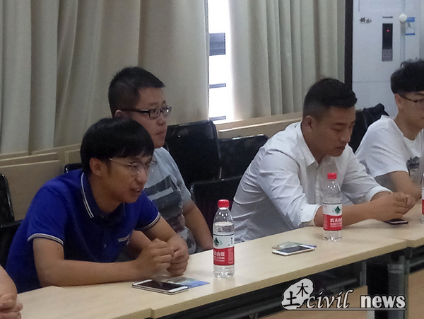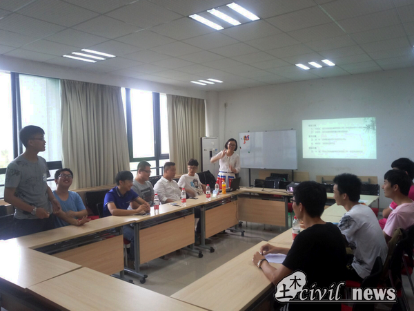 下午2:30在X4229会议室,刘翊泽主要介绍了土木行业海外就业环境,同时和我们分析了当前土木行业的就业形式,他表示土木就业还是有很多的选择,不要太局限,要放宽眼界;熊籽跞主要向我们分享了在读研时寻找导师的经验,并分析了在进一步学习中可能面临的问题;胡焕主要分享了如何把握实习机会,如何主动地寻找实习机会,他强调实习的单位最好是我们感兴趣的方向,这样的实习才会更有意义。刘强以风趣幽默的方式讲述了自己起初因为想赚零花钱,之后就开始集资创办公司的经历。