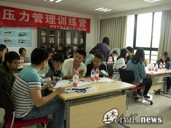 5月7日上午8:45,由太阳成集团tyc7111cc大学生学业与发展指导中心承办的“压力管理训练营”在X4229正式开营.本次训练营旨在给土木本科生提供一个降压缓压的平台,以疏导他们在平时学习工作中形成的压迫感。土木学院分团委书记、13级辅导员刘萍担任本次训练营的指导老师。