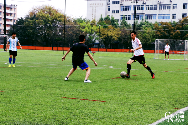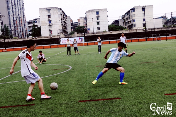 专硕隧道和桥梁队整场比赛打得十分火热,双方的攻势此起彼伏。上半场刚开场不久,专硕隧道就趁桥梁队立足未稳先进一球。随后隧道攻势有增无减,主力队员罗川疆再进一球。但桥梁这边毫不示弱,凭借积极地拼抢,创造了几脚很有威胁的射门,只可惜都没有转化成得分。下半场,桥梁队重新调整了战略队形,调整心态进行反攻,每一位队员的激情丝毫不弱于专硕隧道,在场上争先恐后,来回传球。场上形势越来越胶着,时时发起高潮,场边的观众也渐渐的多了起来,大家连连欢呼叫好,紧张的气氛一直环绕在球场上方。双方僵持十几分钟后,桥梁队用一记世界波打破僵局。随着比赛的深入,桥梁队球员体力下降明显,专硕隧道主力队员罗川疆抓住机会,帽子戏法再进一球,把比分进一步扩大,终场时,比分定格在3:1。