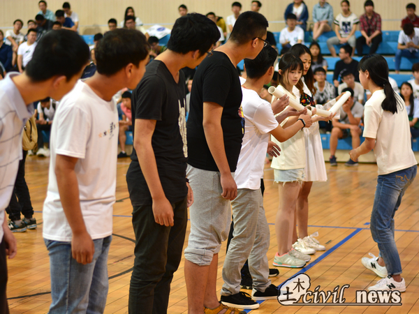 在学生组跳绳比赛如火如荼进行的同时,教师们开始了乒乓球接力比赛。接力比赛比跳绳更加有趣,选手们依次用手中的塑料管计时传递小球,如果小球落地则要重新开始。教师们在这个项目中充分展现了彼此共事多年的默契,期间小球多次险些滑落,但教师们通过配合,次次化险为夷,将小球成功送到了终点。