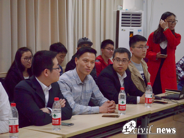 之后的提问环节中,三位学长分别回答了同学们关于招聘、人际关系处理以及土木未来发展前景的问题,黄雪娇老师也发表了自己对于职业发展前景的看法,并且告诉大家未来充满希望。