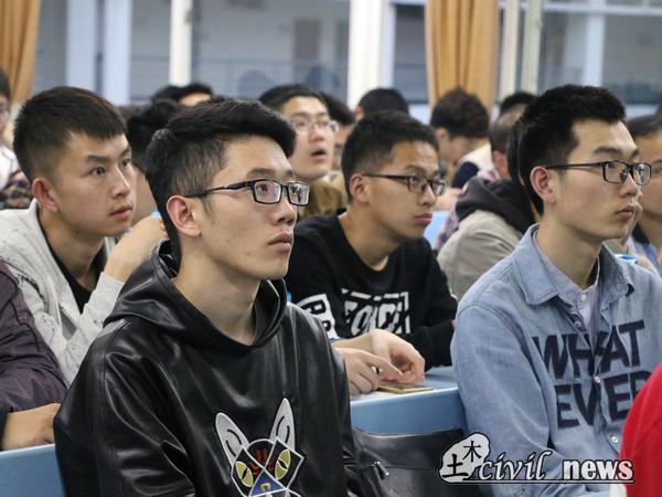 本次讲座共分为两个方面,其一是土木工程行业前景展望,其二是求职指导。在同学们的掌声中,蒋老师开始了他的讲座。