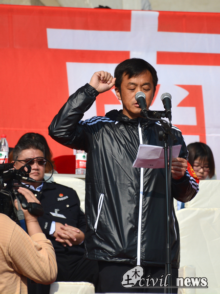 23个学院方阵全部入场后,全体人员起立,面向国旗,奏唱中华人民共和国国歌。随后校党委副书记陈志坚教授致开幕词。他感谢了到场的嘉宾和全体师生,简述了我校体育成就,并号召同学们走出寝室,走出网络,参加体育运动。接下来,运动员代表代德伟同学和裁判员代表李宏图老师进行了宣誓。