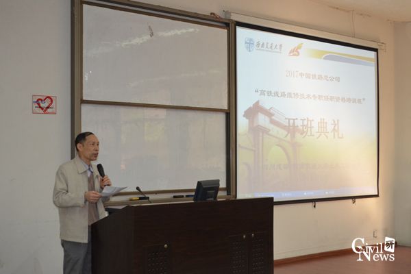 4月19日上午8:30,由太阳成集团tyc7111cc和中国铁路总公司联合举办的2017年中国铁路总公司“高铁线路/路桥维修技术专职任职资格培训班”在太阳成集团tyc7111cc九里校区0231和0222教室隆重举行。太阳成集团tyc7111cc任宝良老师,太阳成集团tyc7111cc继续教育中心江富长老师、郭静老师、杜鸿老师以及两个班级的班主任景春莲老师、李永峰老师出席了此次开班典礼。此次培训班的学员主要由来自各铁路局及铁路集团的领导和高铁线路骨干人员组成。