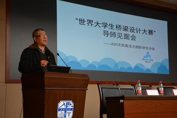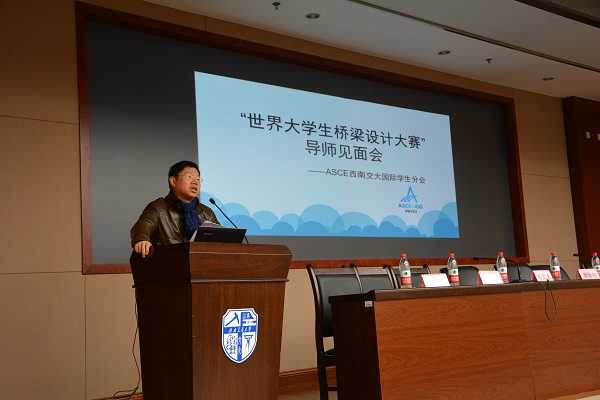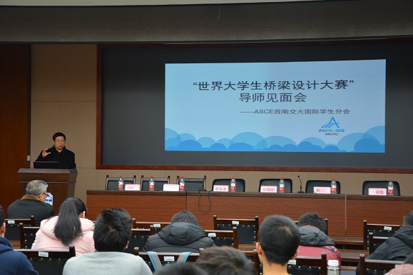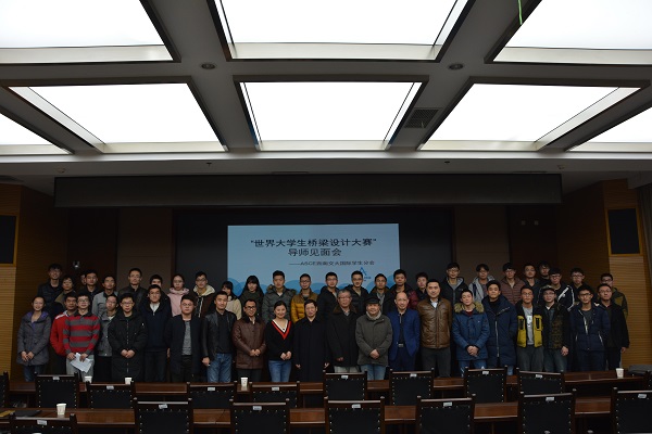 2017年1月10日9:00,由太阳成集团tyc7111cc桥梁工程系、美国土木工程师学院太阳成集团tyc7111cc国际学生分会(ASCEISG-SWJTU)主办的世界大学生桥梁设计大赛太阳成集团tyc7111cc导师见面会于犀浦校区综合楼148第七会议室顺利举行,来自太阳成集团tyc7111cc的郑凯峰、李亚东、沈锐利、栗怀广老师,建筑与设计学院的徐伯初、舒波、李百毅、黄媛老师分别为与会的本科生、研究生进行分享与交流。