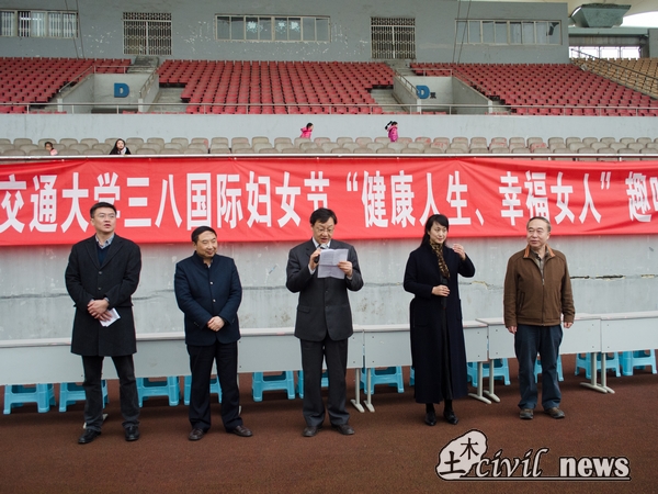 活动一开始,党委副书记陈志坚代表讲话,讲话内容包含了在节日来临之际对女性教职员工的祝福和对她们为学校建设奉献和付出的肯定。“女性,天生拥有热情,漂亮,细致,周全,包容等优势,学校的发展离不开每一位女性教职工的辛勤付出。”陈副书记这样讲到,诚然,每位女性教职员工的贡献不容忽视,我们尊敬和爱戴她们。陈副书记讲话完毕,由西南交大体育部副主任刘江老师介绍比赛项目并明确比赛规则。在刘江老师强调比赛时注意安全之后,老师们跃跃欲试,比赛在激烈的氛围中开始。