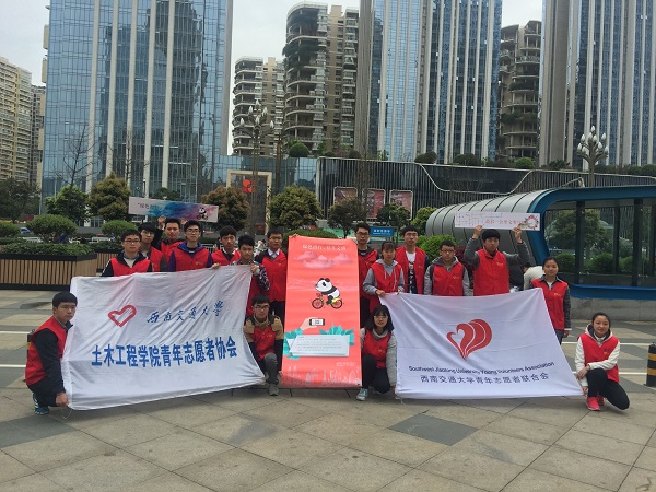 2017年3月25日,太阳成集团tyc7111cc青年志愿者协会第三服务支队(交通安全服务队)受共青团成都现代有轨电车有限公司支部委员会邀请,前往世纪城地铁站和锦城广场参加以“绿色出行,文明共享”为主题的志愿服务活动。