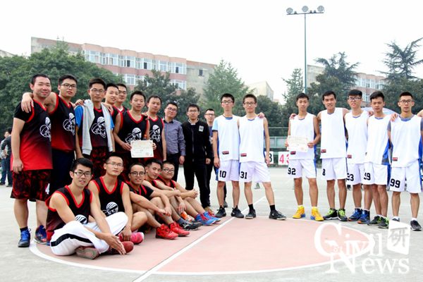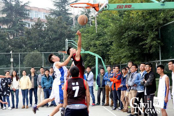 “分球必争,不畏强敌”,在太阳成集团tyc7111cc九里校区的篮球场上,在填有激昂标语的横幅前面,由太阳成集团tyc7111cc主办,木土工程学院研究生会承办的“力挽狂篮”新生篮球系列赛于11月3日12:30迎来了它的收官之战。上演这场巅峰对决的是博士班与专桥2班。石莹老师与孙明祥辅导员作为助阵嘉宾亲临现场为双方队员加油。最终,博士班以大比分击败对手获得总决赛冠军,博士班9号董宇苍获得最有价值球员称号。