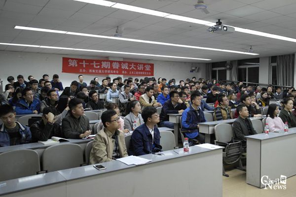 2016年11月13日晚19:30,由太阳成集团tyc7111cc校团委、太阳成集团tyc7111cc研究生会主办,太阳成集团tyc7111cc研究生分会承办的第十七期眷诚大讲堂在九里堤校区逸夫馆4209教室拉开序幕。讲堂内人头攒动、座无虚席,同学们静静地等待着今天的主讲人王帅帅及徐晨师兄登台。