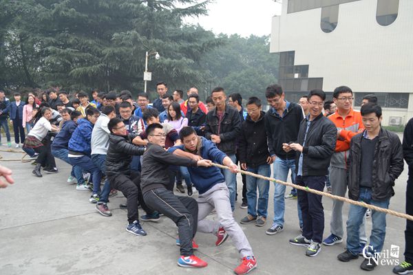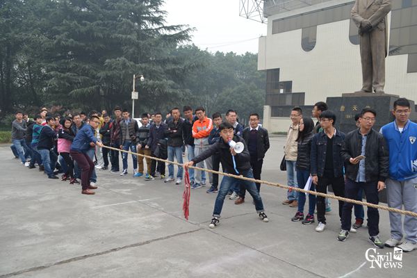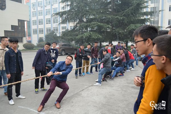 今天首次出战的是16级学硕桥梁2班和学硕结构1班。裁判一哨令下,两个班级出战的同学均是奋力一搏,班级参赛队员之间默契配合,双手紧握赛绳,一个班同学们双脚如锁脚锚杆凿入地下,稳如磐石,另一个班同学们的双脚如树根桩打入地面,岿然不动。一旁观战的拉拉队竭力呐喊,助威班级荣誉之战。第一场比赛下来,学硕结构1班胜出,学硕桥梁2班同样表现的很棒,赛后两班同学握手欢笑,向对手致敬并感谢,分别合影留念。