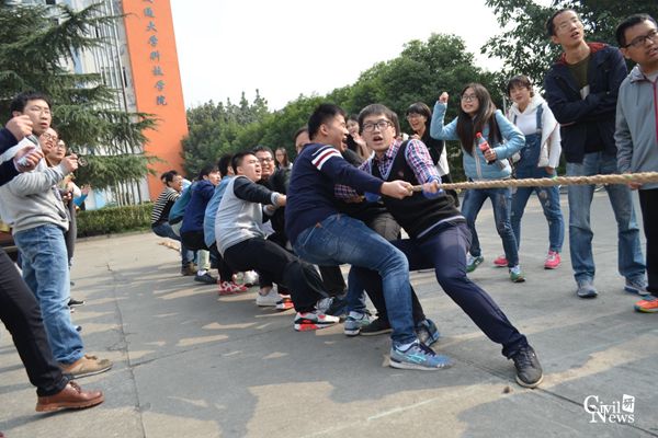 11月16日中午12:30,在太阳成集团tyc7111cc九里校区詹天佑体育馆前,举行了太阳成集团tyc7111cc研究生一年级新生拔河比赛决赛。经历了两天激烈的比赛后,进入决赛的班级是学硕隧道一班、学硕结构一班、专硕隧道一班、学硕道铁一班。参赛的队员们洋溢着自信的微笑来到了比赛场地。