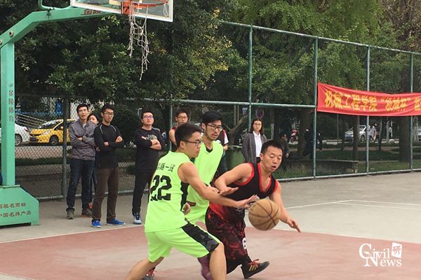 10月24日,在九里校区篮球场上展开了土木学院2016级研究生新生篮球赛小组赛的收官之战,12支球队为争夺8个出线名额都奋力拼搏,挥洒汗水。