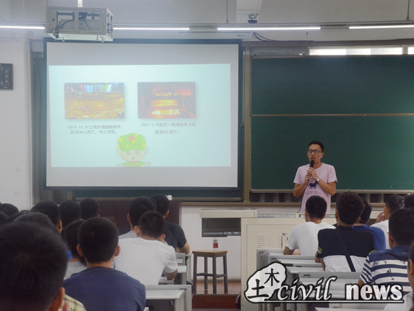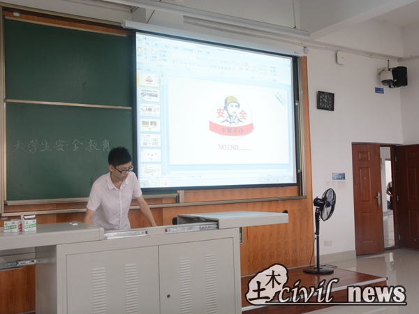 最后,车老师向大家介绍了宿舍里最可能出现的安全事故——火灾。与一些其他的安全事故不同,我们平常更容易接触电和火。因此,火灾隐患更容易被我们所忽略。几张宿舍被烧毁的可怕场景以及数据让许多在座的同学低声惊呼。大家纷纷表示以后要多加注意,小心用电。最后,车老师希望大家能够重视这次安全教育,期望大家的大学生活平平安安的度过!至此,一天的安全教育工作全部完成,记者也在这里希望大家能将安全的警钟铭记于心!
