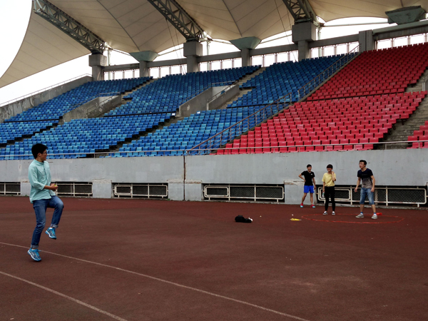 时间已经过去两个小时,活动只剩下最后两项,队伍们陆陆续续赶到了北区田径场——第五个活动点,按照先后顺序依次进行游戏。