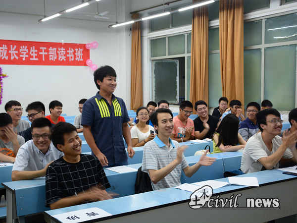 紧承青协代表的发言,科创中心代表张金龙、团建中心代表唐旭以及就业指导中心代表王子阳同学分别代表各自的组织上台分享了他们的读书体会以及感悟,同时也抛出自己的困惑和问题与全班成员进行交流讨论。紧接着,便是文章优秀段落的朗诵环节,其中,园区管理中心代表雷景刊同学颇具幽默色彩的深情朗读让班级的气氛一下子活跃起来,掌声与笑声不绝于耳。接下来,张昊冲同学、张靖同学、祈旺同学和孙君同学分表代表青年志愿者协会、新闻中心、园区管理中心以及学业中心上台分享了他们的读书感悟与体会,同时,也和其他同学交流讨论了各自的问题。