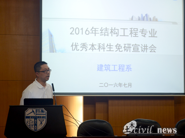 接下来,周晓军教授则以一种详尽严密的学科态度为大家带来地下系的解读。周教授的PPT主要从师资力量、专业课的设置、招生情况和保研工作条件等方面运用大量的数据以及实例进行分析。出现在屏幕上的数据宛如跳动的音符,让大家对于地下系有了更加深刻的理解。随后上台的铁道系和岩土系的老师也为各位在座的同学带来了本专业的详尽解读。结构工程的潘毅教授则通过一段十分钟简单而充实的介绍让大家对结构工程拥有了自己的理解,潘教授同时还对学生应选择有名还是有声的导师表达了自己的观点。