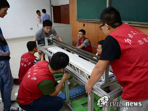 整个比赛展开得十分顺利,参赛队员们的心血在今天得到了预演,没一座桥梁都是桥梁工程师的心血,同样,今天的每一个模型都是参赛队员的努力结晶,希望在明天的决赛里,能够出现更精彩的对决。