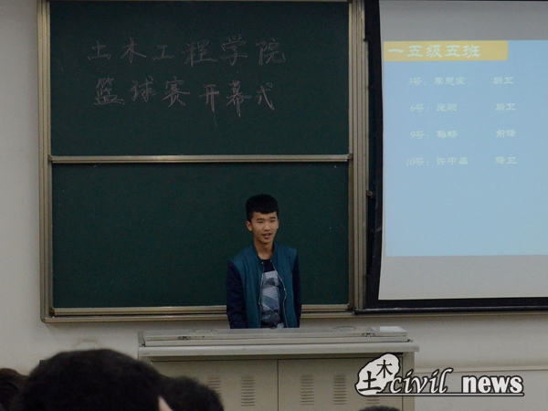 伴随着阵阵掌声,仪式进行到自我介绍的环节。各位党支部、学生组织的代表们或用幽默话语或用传神的动作,通过一页页精心准备的ppt向各位老师与同学们介绍自己的队伍与球员。他们的话语中都洋溢着满满的自信,对夺冠势在必得。而当代表们介绍到一些去年篮 球赛中大放异彩的球员时,场下时不时传来掌声与赞叹的声音。