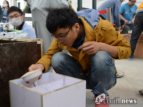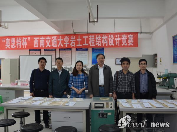 在正式决赛之前,马建林主任及李锦红副书记发表了讲话。马主任表示,土木工程是一个实验性很强的学科,作为一名土木学子,我们需要丰富的知识以及感知力,同时,动手能力必不可少。马主任提到,岩土工程作为土木工程两大支科之一,有很好的未来与前景,而这次比赛真正考验了学生们迎接未来机遇时所具备的能力。李副书记则对这次比赛做出了一些要求:“任何一门学科都是充满生机的,在比赛过程中我们要赛出交大学子的生命力,尊重老师的指导与评判,尊重其他组同学,赛出积极的水平。”话毕,李书记宣布比赛正式开始。