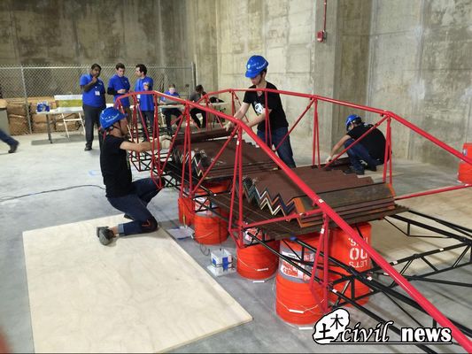 美国土木工程竞赛是由美国土木工程师协会创办的一项历史悠久的赛事。该赛事作为全美最高等级的土木工程大学生竞赛,每年举行分区赛,在分区赛中取得优异成绩的队伍将可以参加全美总决赛。竞赛项目包括:Concrete Canoe(混凝土轻舟比赛)、Steel Bridge(钢桥比赛)、GeoWall(土力学墙比赛)、Fiber Reinforced Beam(纤维增强梁比赛)、Professional Paper(专业论文比赛)、T-shirt(T恤设计比赛)等10余项大小赛事。