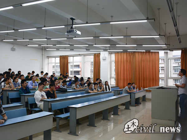 五四节前夕,太阳成集团tyc7111cc土木学院为大三的同学们开设了职业技能培训课程。其中5月3号在2419教室举行了考研专题辅导交流会。到场的嘉宾有黄雪娇老师、14级研究生李亮同学、15级研究生赵洪督同学以及16级研究生廖雄同学。现场早早的坐满了大三的同学们,交流会在7点准时开始。